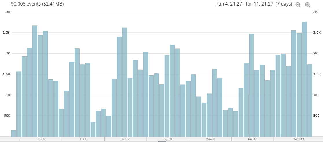 Drilling into the logs further, it would appear that the volume of events with connections that log a username or password being used will be in the region of 4.6 million attempts per year.